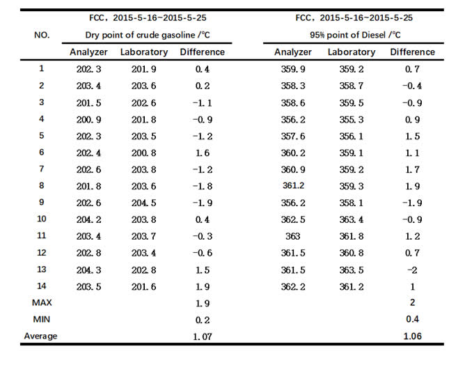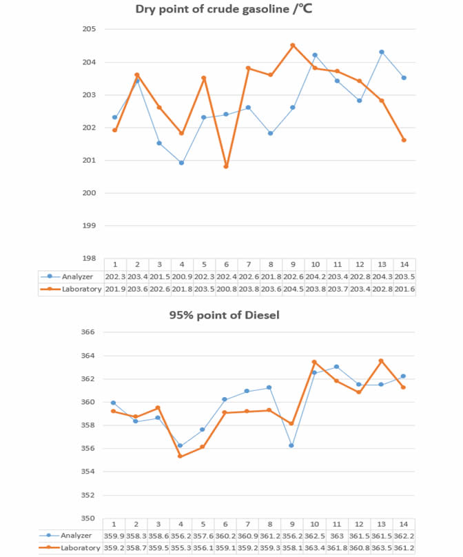 Therefore, we can safely arrive at the conclusion that our analyzer has good repeatability and process-tracking performance. In addition, it acts as an precise guidance on the refinery process, especially when the process experiences evident changes and fluctuations.
